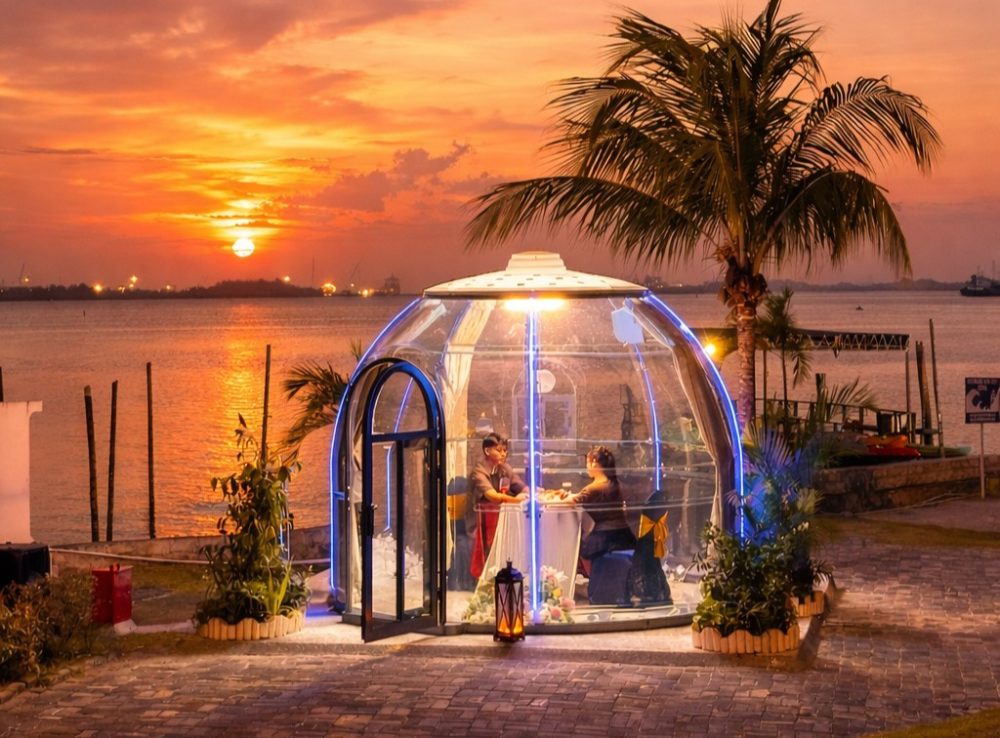 Paket ini dirancang bagi pasangan yang ingin menikmati momen spesial jauh dari hiruk-pikuk kota, dengan konsep makan malam di dalam dome transparan di tepi pantai.