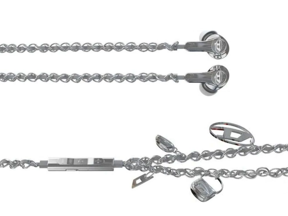 Berbeda dari tren true wireless earbuds yang mendominasi pasar, Diesel justru menghadirkan desain berkabel dengan tampilan logam mencolok. Model ini dirancang sebagai pernyataan gaya (fashion statement), bukan sekadar perangkat penunjang audio.