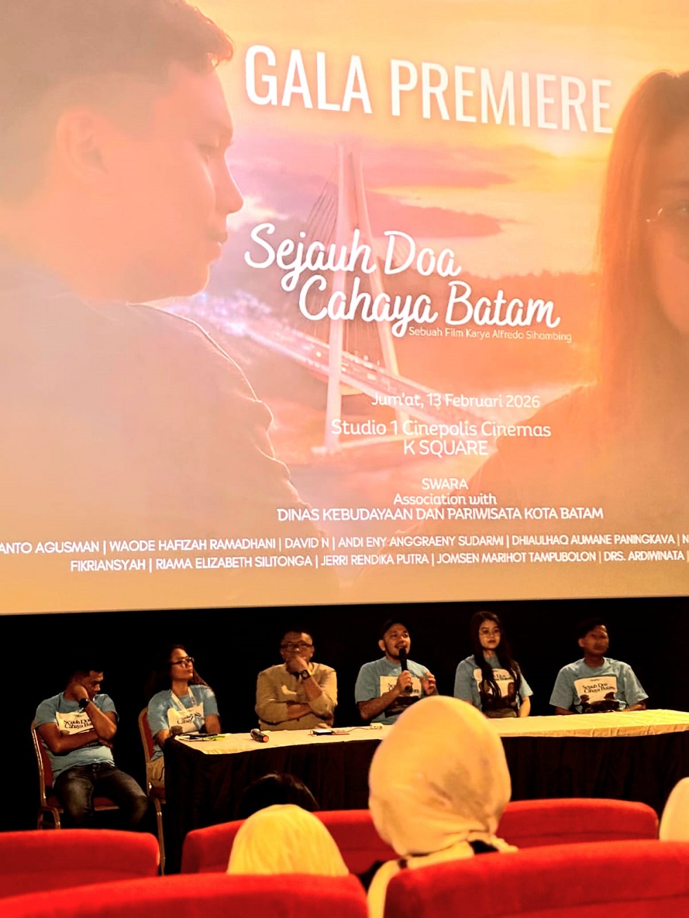 batampos – Sorot lampu meredup. Layar lebar di Bioskop Cinepolis K-Square Batam mulai menampilkan adegan pembuka yang mengangkat denyut kehidupan perantau di Kota Batam. Tepuk tangan penonton pecah ketika kredit pembuka film Sejauh Doa Cahaya Batam muncul di layar.