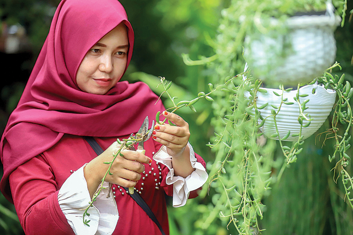 Masih Diah, tanaman cukup disiram satu kali dalam seminggu. Siram hingga air mengalir keluar dari media tanam dan interval penyiraman harus setelah media tanam kering. Tujuannya, akar terhindar dari pembusukan akibat air yang terperangkap. ’’Kalau kena hujan tidak perlu disiram,” ujar ibu dua anak itu.